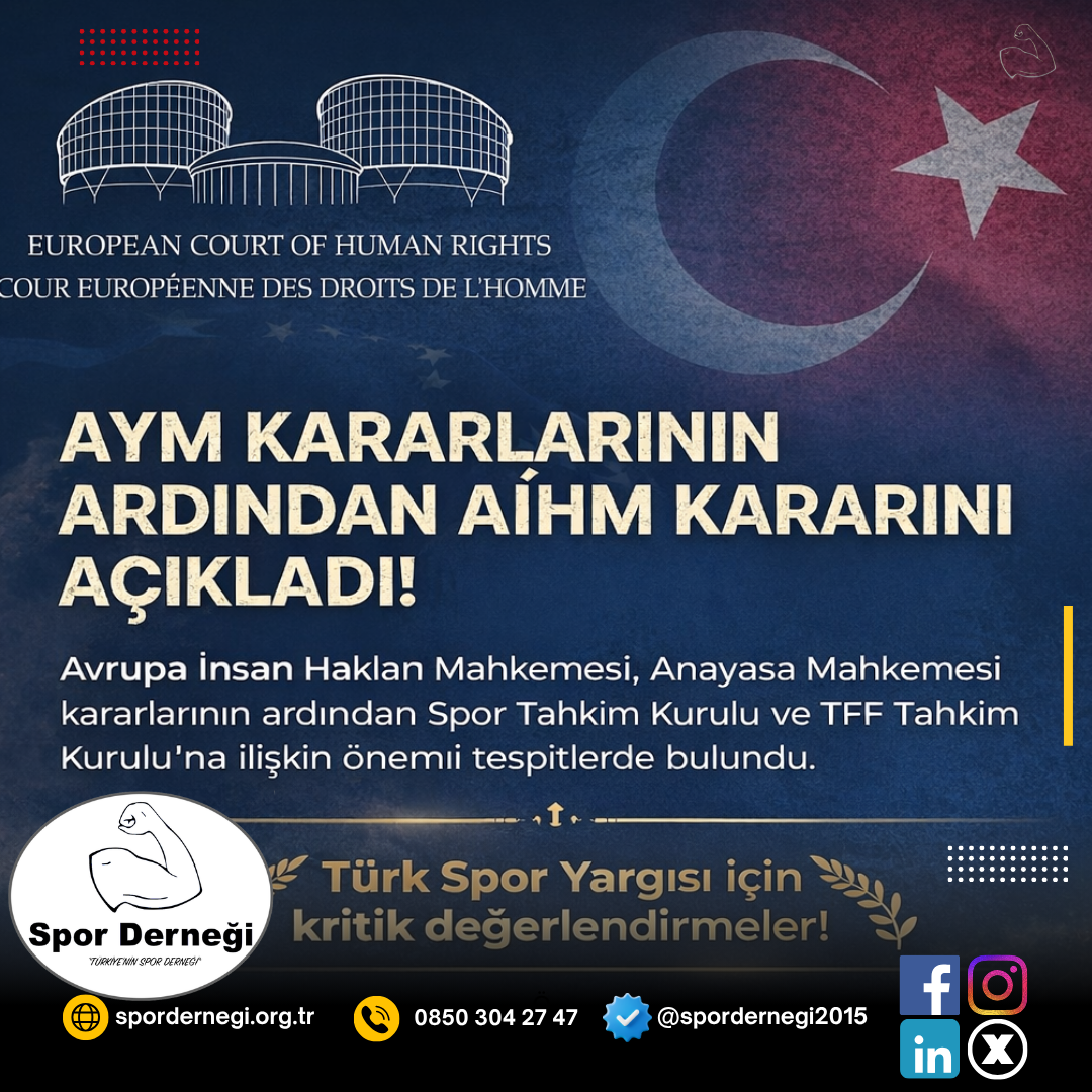 Türkiye’nin Spor Derneği olarak, AİHM tarafından ortaya konulan bu iki kararın, Türk spor yargısının gelişimi açısından kritik bir eşik olduğunu değerlendiriyoruz.